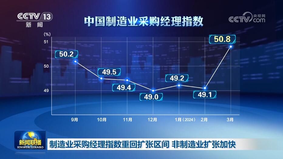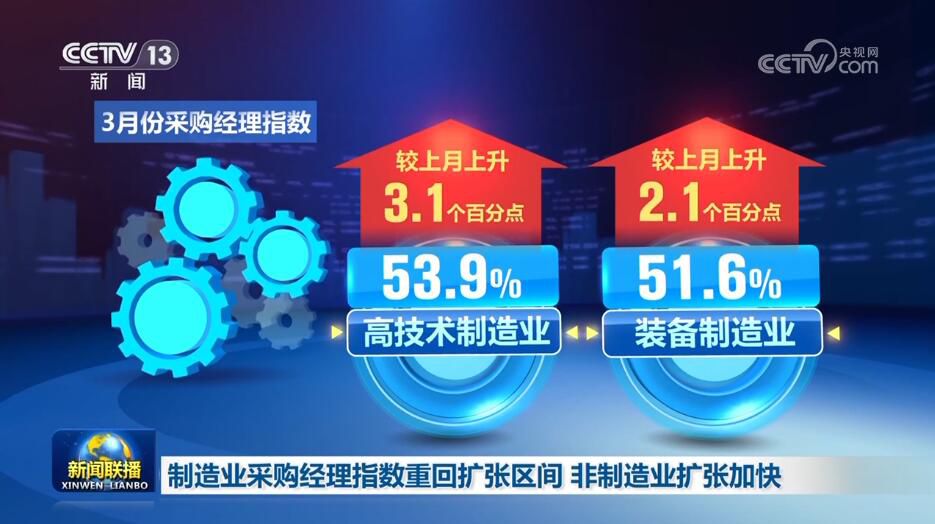 央視網消息:3月31日,《新聞聯(lián)播》報道了3月份中國采購經理指數、各地重大工程建設,以及生態(tài)保護、春耕等領域取得的新成績、新成果,各行各業(yè)奮力拼搏,匯聚成向上的蓬勃力量,繪就出中國經濟萬千氣象。