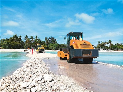 在基里巴斯首都塔拉瓦,中國企業(yè)正在為當地民眾修筑一座便橋。