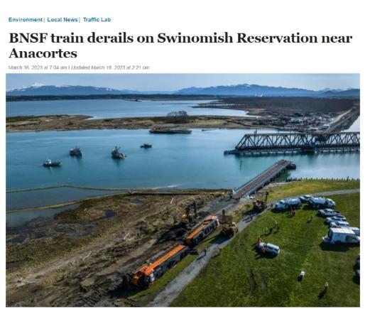 華盛頓州生態(tài)廳和BNSF都表示,沒有人員傷亡報告。