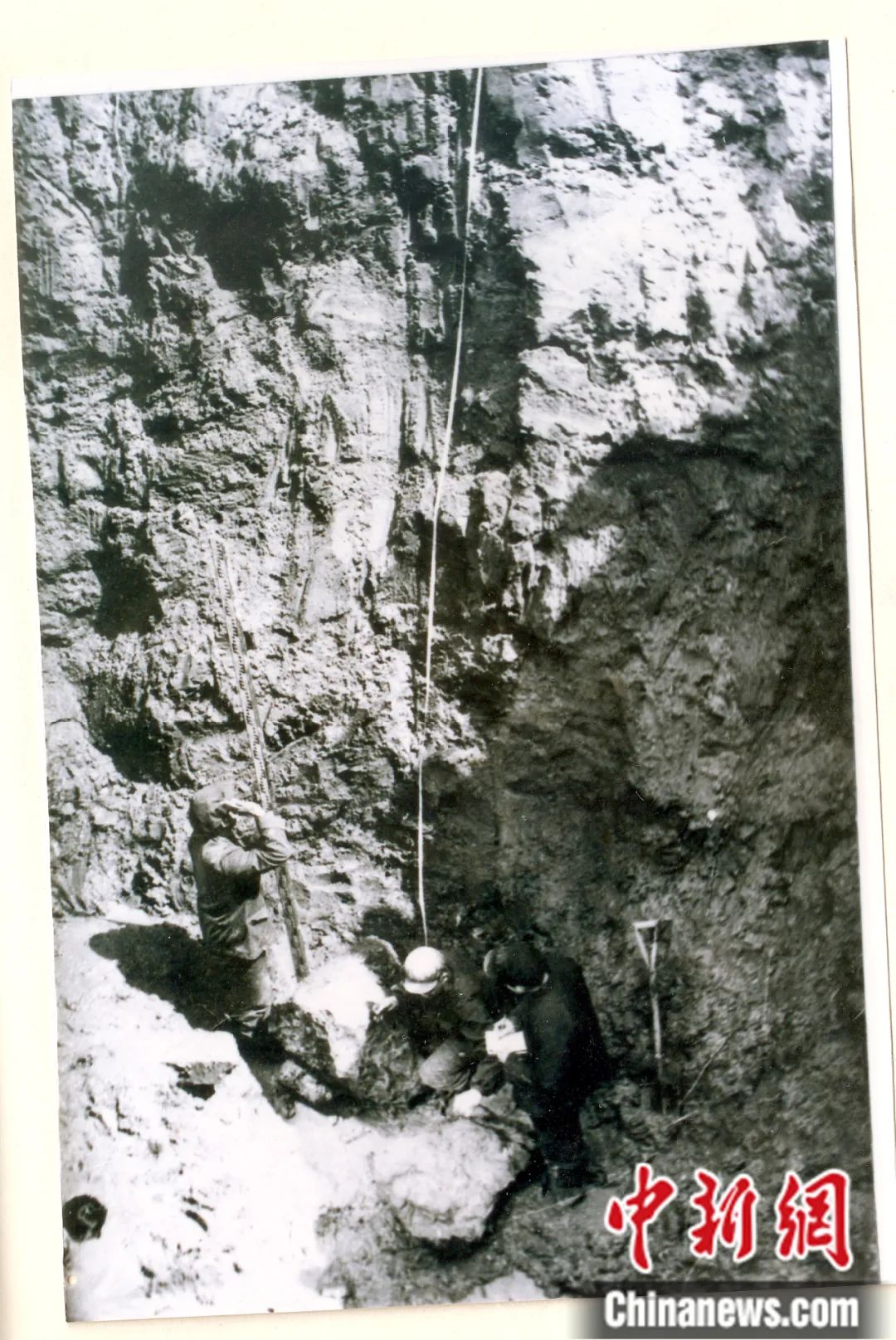 歐陽(yáng)自遠(yuǎn)(左二)與外國(guó)專家研究吉林隕石。吉林市隕石博物館供圖