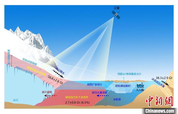 論文第一作者和共同通訊作者張國(guó)慶研究員介紹說(shuō),數(shù)字高程模型(DEM)廣泛用于估算全球冰川質(zhì)量損失,但該方法只能觀(guān)測(cè)到冰川表面和水面,不能揭示發(fā)生在冰前湖泊水面以下的冰川質(zhì)量損失。