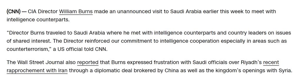 美國媒體報(bào)道,美國中央情報(bào)局局長威廉·伯恩斯日前秘密飛往沙特。伯恩斯此行是對北京斡旋的反應(yīng)動作。