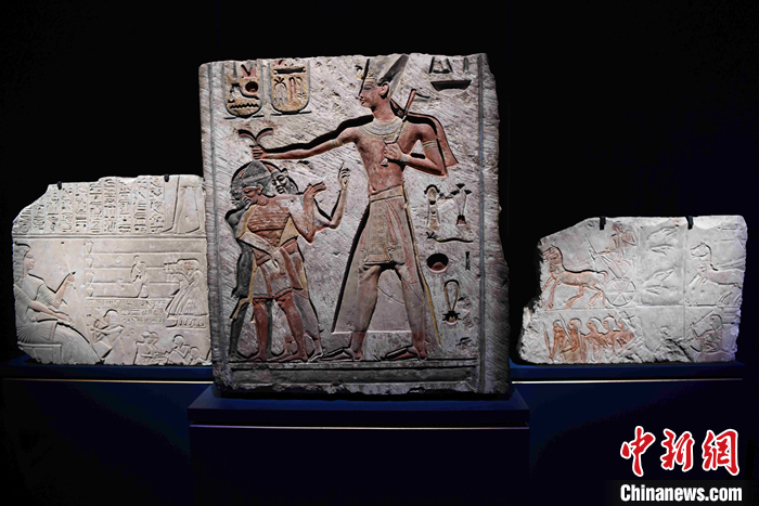 據(jù)介紹,此次文物展聚焦古埃及聞名于世的法老拉美西斯二世,共展出180多件相關(guān)文物,其中包括石棺、雕像、金銀器等。展覽還包括重現(xiàn)古埃及戰(zhàn)斗場(chǎng)景的模擬視頻等。多個(gè)精心布置的展廳在揭幕日當(dāng)天向觀展者開(kāi)放。