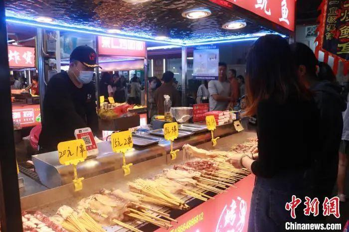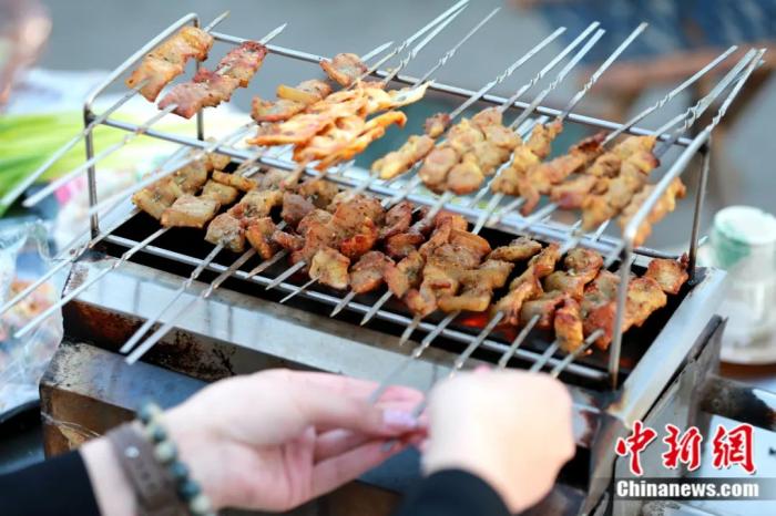 圖為游客正在購(gòu)買燒烤。林馨 攝