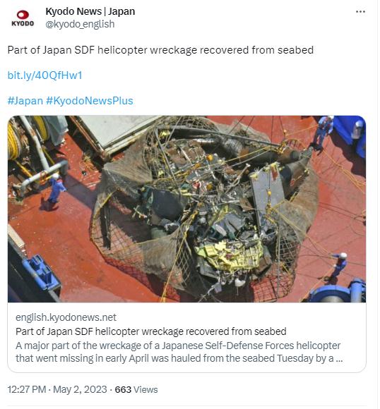 日媒援引政府消息人士稱,為查明事故原因,陸上自衛(wèi)隊正在檢查直升機(jī)的飛行記錄儀以及被撈起回收的部分,但這一部分受損嚴(yán)重,幾乎無法辨認(rèn)。