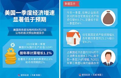 近日,美國(guó)商務(wù)部經(jīng)濟(jì)分析局?jǐn)?shù)據(jù)顯示,美國(guó)2023年一季度GDP年化環(huán)比增長(zhǎng)1.1%,大幅低于市場(chǎng)預(yù)期的2%,較去年四季度2.6%的增幅有所回落,已連續(xù)兩個(gè)季度放緩?!度A爾街日?qǐng)?bào)》網(wǎng)站報(bào)道稱(chēng),在通貨膨脹仍然高企、利率不斷上升的情況下,美國(guó)第一季度經(jīng)濟(jì)增長(zhǎng)下滑,增加了人們對(duì)今年晚些時(shí)候可能出現(xiàn)經(jīng)濟(jì)衰退的擔(dān)憂。
