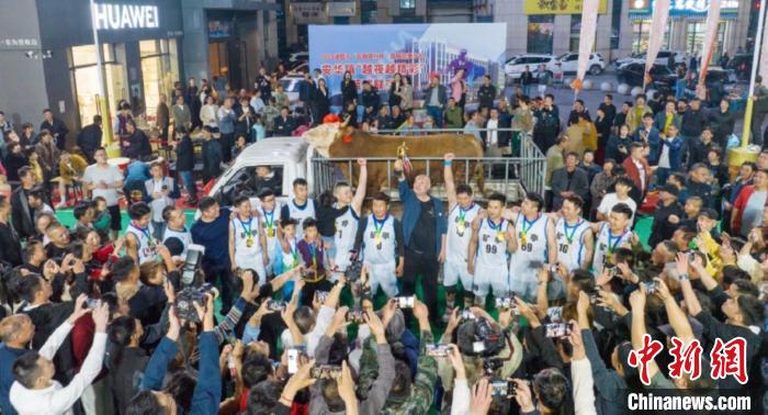 “村BA”現(xiàn)場,冠軍隊伍獲得一頭黃牛 諸暨市融媒體中心 供圖