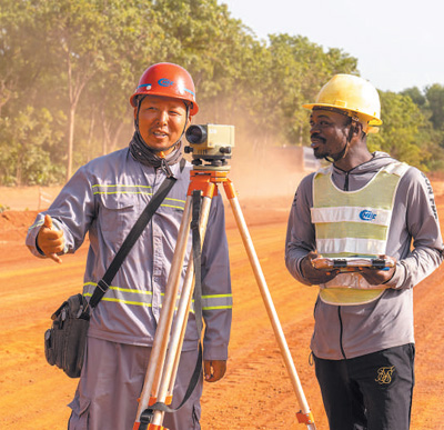4月13日,中國和科特迪瓦工作人員在科北部公路項(xiàng)目施工現(xiàn)場(chǎng)一起工作。