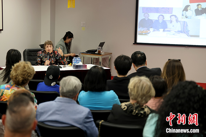 當(dāng)?shù)貢r(shí)間5月13日,加拿大著名作家、詩人、漢學(xué)家李莎·卡爾杜齊(Lisa Carducci)在中國駐蒙特利爾總領(lǐng)事館獲頒中國駐加拿大使館2022年度“大使獎(jiǎng)”。李莎在中國駐蒙特利爾總領(lǐng)事館舉辦講座,向當(dāng)?shù)亟傥桓鹘缛耸恐v述自己在中國的經(jīng)歷及她眼中的文化差異等。 中新社記者 余瑞冬 攝