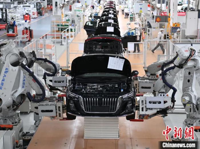在吉林長春的中國一汽紅旗制造中心繁榮廠區(qū),全自動機械手臂在裝配輪胎。智能化、自動化、無人化成為生產(chǎn)生活發(fā)展的趨勢。張瑤 攝