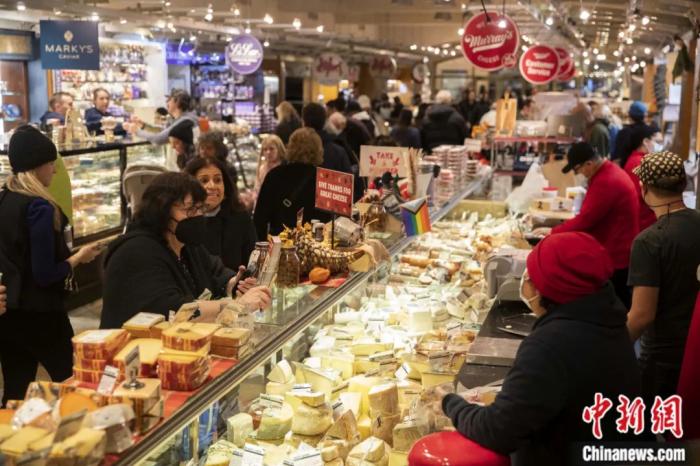 2022年冬季,顧客在紐約中央車站市場詢問奶酪價格。美國在當(dāng)年遭遇了40年來最嚴(yán)重的通貨膨脹。消費者價格指數(shù)(CPI)同比漲幅在6月達到9.1%的峰值后,一直保持在7%以上的高位,持續(xù)“高燒”的通脹令經(jīng)濟承壓。廖攀 攝