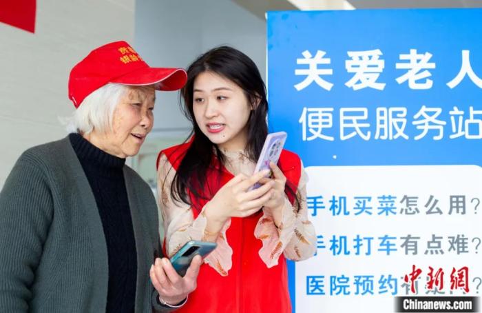 在江蘇省海安市大公鎮(zhèn)便民服務(wù)中心開設(shè)的老年人手機公益課堂上,志愿者指導(dǎo)老年人如何使用智能手機。翟慧勇 攝