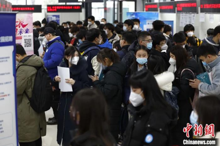 2023年2月8日,北京市教委所屬北京高校大學(xué)生就業(yè)創(chuàng)業(yè)指導(dǎo)中心迎來春季首場線下雙選會,應(yīng)聘者排隊等候向用人單位提交個人簡歷。富田 攝