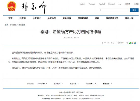 此前,國務(wù)委員兼外交部長秦剛訪問緬甸期間,就鄭重地向緬方提到了網(wǎng)絡(luò)詐騙:“緬甸邊境地區(qū)長期盤踞電信網(wǎng)絡(luò)詐騙團(tuán)伙,嚴(yán)重侵害中國公民利益,中國民眾對此深惡痛絕。中國政府高度重視,決心嚴(yán)厲打擊?!?/p>