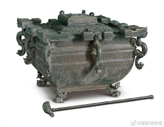 比如人們熟悉的“青銅冰鑒”,它是由一個方鑒和一件方尊缶組成的青銅套器,與之配套的還有一把長柄青銅勺。從造型上看,該青銅冰鑒結(jié)構(gòu)精巧,體態(tài)厚重。