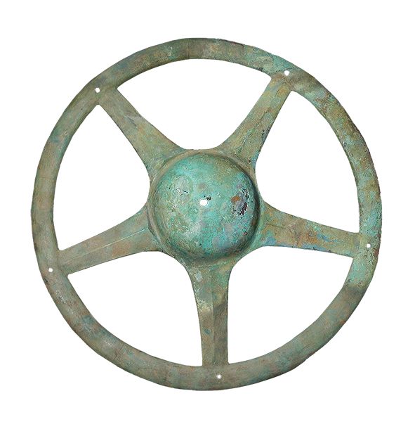 三星堆出土文物中,青銅太陽輪形似如今的“方向盤”,其用途引來了種種猜測:有研究者認為這是車輪,還有觀點認為是用于軍事作戰(zhàn)的盾牌上的盾飾。多數(shù)意見認為,這種形制的器物應(yīng)即是“太陽形器”。它是常設(shè)在古蜀國神廟中的神器,或用于祭祀儀式。