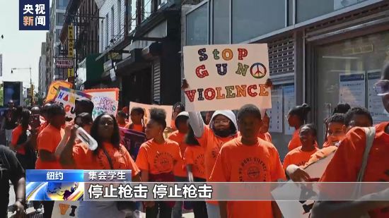 在紐約市,一群學(xué)生舉行游行和集會(huì)活動(dòng),呼吁人們反對(duì)槍支暴力和禁止將槍支帶入校園。