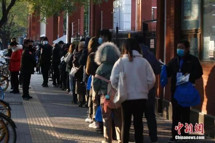 2023年1月8日,在江西南昌的國(guó)考考點(diǎn),幾名考生在察看考場(chǎng)安排表。中新社記者 劉力鑫 攝