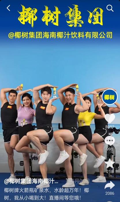 今年3月8日,椰樹(shù)以慶祝婦女節(jié)為由開(kāi)設(shè)了男主播專(zhuān)場(chǎng)直播間。于是,一群身穿黑色背心、運(yùn)動(dòng)褲的陽(yáng)光男模特開(kāi)始手拿椰樹(shù)產(chǎn)品在直播間跳操秀肌肉,并喊出那句經(jīng)典臺(tái)詞:“椰樹(shù),我從小喝到大?!?/p>