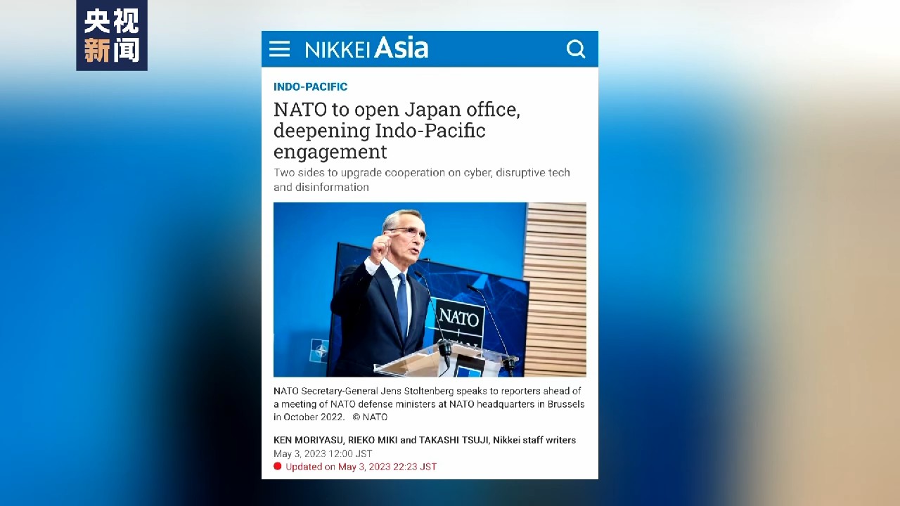 今年5月,日本《日經(jīng)亞洲》刊出獨家新聞,援引來自日本和北約官員的信源報道稱,北約駐日本辦事處將在2024年正式掛牌。