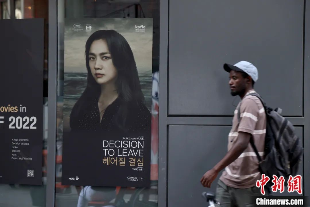韓國影片《分手的決心》亮相第47屆多倫多國際電影節(jié),行人從主演湯唯的海報前經(jīng)過。余瑞冬 攝