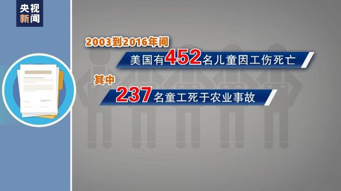農(nóng)業(yè)領(lǐng)域是美國(guó)雇傭童工的重災(zāi)區(qū)之一。據(jù)美國(guó)非營(yíng)利組織“農(nóng)場(chǎng)工人就業(yè)項(xiàng)目聯(lián)合會(huì)”提供的數(shù)據(jù),美國(guó)仍有50萬至80萬名童工在農(nóng)場(chǎng)工作。農(nóng)場(chǎng)勞作繁重、條件艱苦,童工還常被置于因天氣、農(nóng)藥及使用農(nóng)具農(nóng)機(jī)所產(chǎn)生的危險(xiǎn)中。《華盛頓郵報(bào)》報(bào)道,2003年至2016年間,美國(guó)有452名兒童因工傷死亡,其中237名童工死于農(nóng)業(yè)事故。