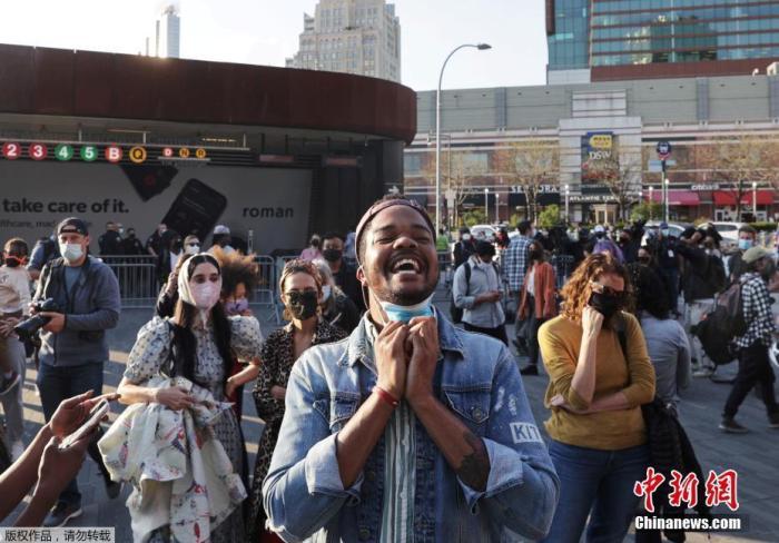 2021年6月25日,美國(guó)弗洛伊德案涉事前警察肖萬(wàn)(Derek Chauvin)獲刑270個(gè)月,即22年零6個(gè)月。圖為美國(guó)民眾在街頭激動(dòng)高呼。
