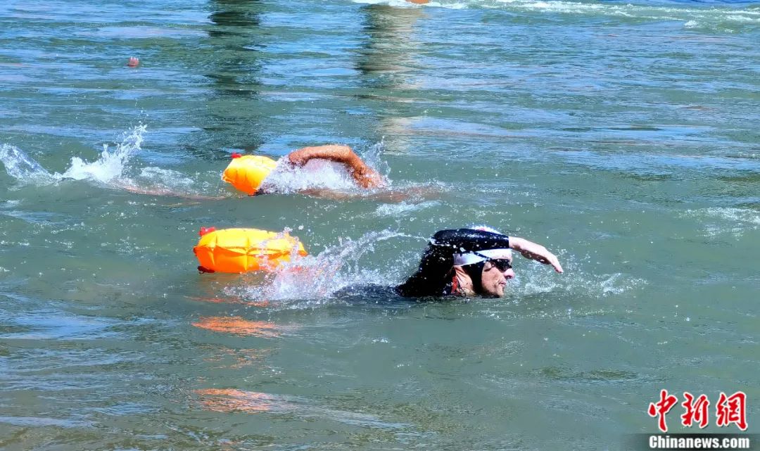 2022年7月,來自德國、美國、英國、比利時、俄羅斯等20個國家和地區(qū)的211名運(yùn)動員和競技愛好者,在青海省黃河上游水域參加搶渡黃河極限挑戰(zhàn)賽。李雋 攝