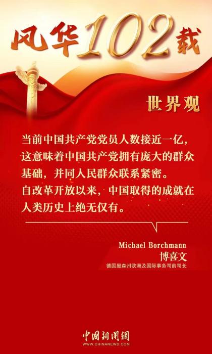 中新網(wǎng)7月5日電 (陳天浩)2023年是中國共產(chǎn)黨建黨102周年。近日,德國黑森州歐洲及國際事務司前司長博喜文(Michael Borchmann)在接受中國新聞網(wǎng)專訪時表示,中國共產(chǎn)黨的成功離不開同人民群眾的緊密聯(lián)系。