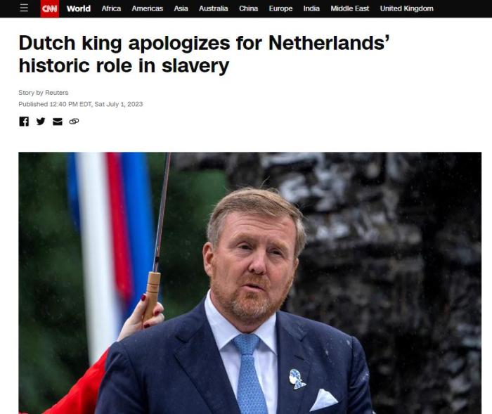 據(jù)美國(guó)有線(xiàn)電視新聞網(wǎng)(CNN)報(bào)道,荷蘭國(guó)王威廉-亞歷山大當(dāng)天出席了紀(jì)念荷蘭廢除奴隸制160周年的儀式,并作出了上述表態(tài)。