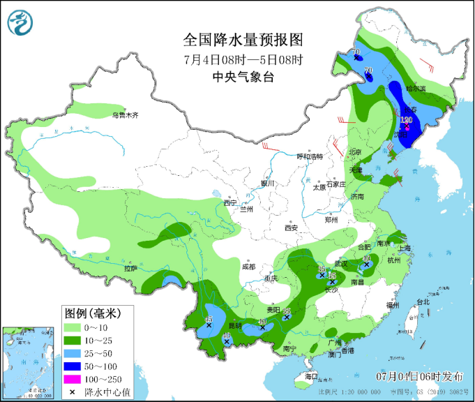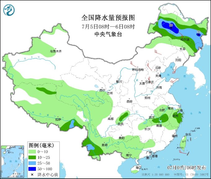中新網(wǎng)7月4日電 據(jù)中央氣象臺網(wǎng)站消息,中央氣象臺今晨繼續(xù)發(fā)布暴雨藍(lán)色預(yù)警:預(yù)計今明兩天,東北地區(qū)及內(nèi)蒙古東北部將成強降雨主陣地,其中今天白天至夜間,內(nèi)蒙古東北部、黑龍江西南部、吉林、遼寧中東部等地部分地區(qū)有大到暴雨,遼寧東北部等局地有大暴雨(100~120毫米);上述部分地區(qū)伴有短時強降水(最大小時降雨量20~50毫米,局地可超過60毫米),局地有雷暴大風(fēng)等強對流天氣。明天,內(nèi)蒙古東北部、黑龍江大部、吉林北部有中到大雨,局地暴雨。受強降雨影響,內(nèi)蒙古東北部、東北部分地區(qū)等地有暴雨災(zāi)害中高風(fēng)險,關(guān)注局地可能發(fā)生的山洪、地質(zhì)災(zāi)害和城鄉(xiāng)積澇,并防范強對流天氣的危害。