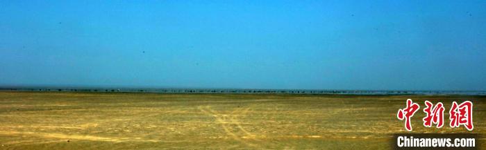 在海市蜃樓觀測(cè)點(diǎn),沙漠上出現(xiàn)一片湖面,隱約能看到湖面上波光粼粼,水波隨風(fēng)翻滾。 孜瓦爾古麗·卡德爾 攝