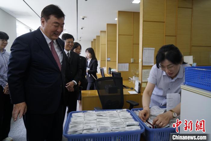 中新社首爾7月7日電 (記者 劉旭)當(dāng)?shù)貢r間7日,中國駐韓國大使邢海明赴首爾中國簽證申請服務(wù)中心調(diào)研,了解中心運營情況,慰問中心工作人員,并同現(xiàn)場簽證申請人親切交流。使館領(lǐng)僑處公參鐘洪糯陪同。