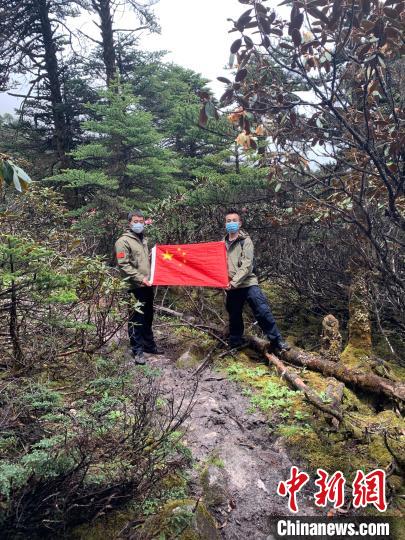 圖為王彥凱(右)和戰(zhàn)友在一線山口宣誓主權(quán)。 拉郊邊境派出所供圖