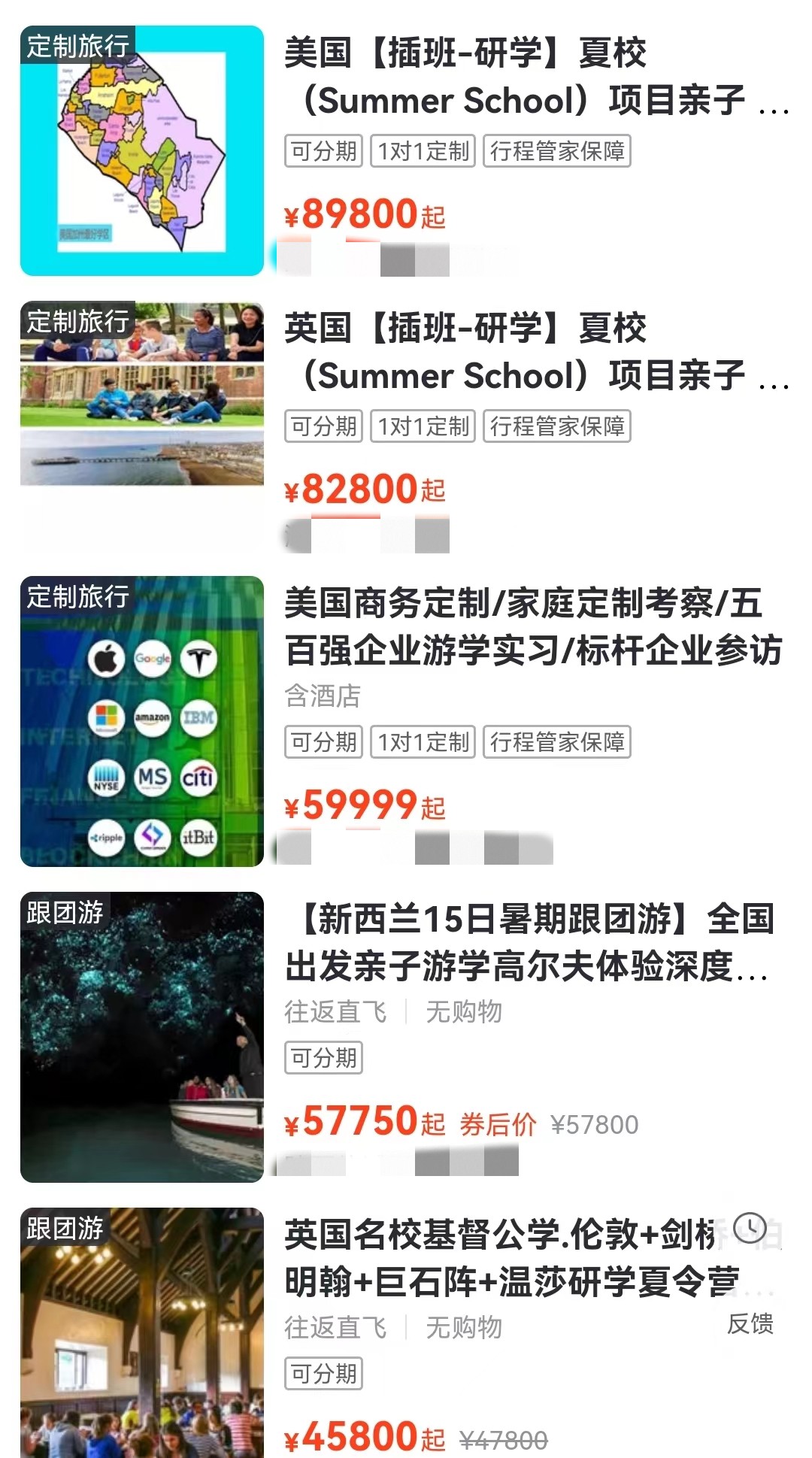 低至100多元的一日研學(xué),高到近9萬元的美國插班研學(xué),打開某在線服務(wù)平臺,各種研學(xué)項目應(yīng)有盡有。