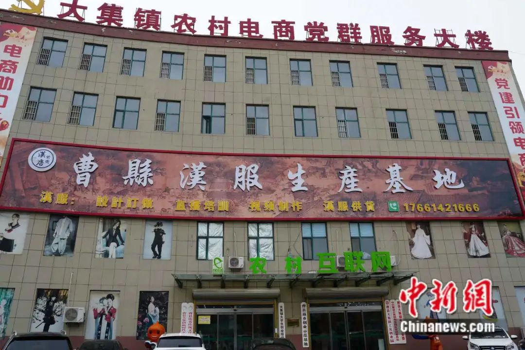 此外,官員直播帶貨、公職人員參與漢服展演、“鄉(xiāng)村好青年貸”金融服務(wù)等系列舉措,也直接帶動(dòng)曹縣漢服產(chǎn)業(yè)崛起。電商直播賣漢服現(xiàn)已成為曹縣大集鎮(zhèn)的一道風(fēng)景線,全鎮(zhèn)1100家電商企業(yè),2022年銷售額超過70億元。