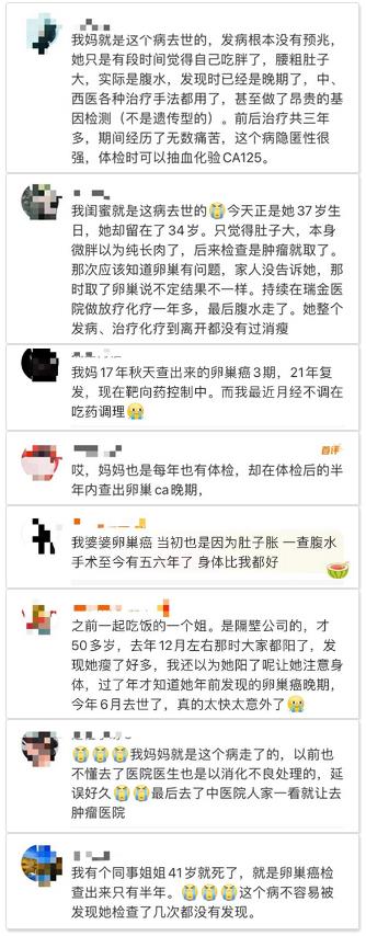 “卵巢屬于深部器官,發(fā)病不易發(fā)現(xiàn),且患者得的是上皮性卵巢癌,這種癌進(jìn)展非???,早期在腹腔內(nèi)播散,會在網(wǎng)膜轉(zhuǎn)移,迅速產(chǎn)生大量腹水,目前還沒有很好的卵巢癌篩查手段?!?楊玲玲解釋。