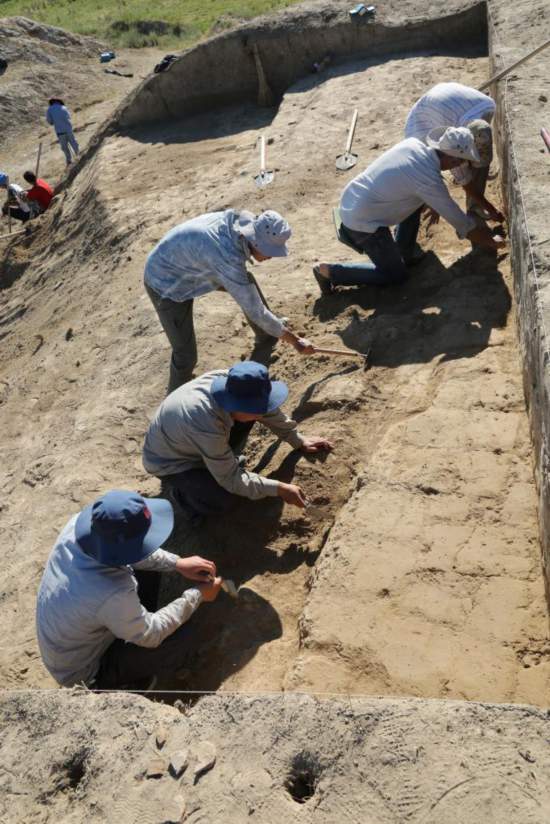 2018年7月5日,中國(guó)和吉爾吉斯斯坦考古人員聯(lián)合發(fā)掘吉爾吉斯斯坦紅河古城西側(cè)佛寺遺址。新華社發(fā)(受訪(fǎng)者供圖)