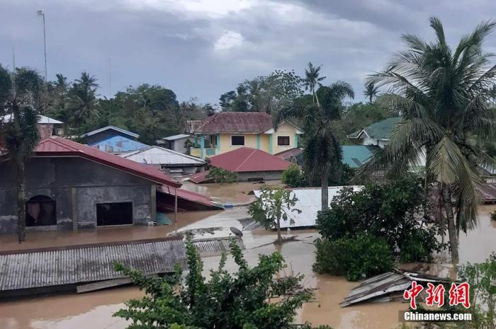 臺風(fēng)“杜蘇芮”于當(dāng)?shù)貢r(shí)間7月26日相繼在菲律賓卡加延省富加島和達(dá)盧皮里島登陸,帶來強(qiáng)降雨。圖為當(dāng)?shù)貢r(shí)間7月27日,菲律賓卡加延河谷大區(qū)卡加延省阿布盧鎮(zhèn),洪水已淹至部分民房房頂。中新社發(fā) 菲律賓卡加延省信息辦公室供圖