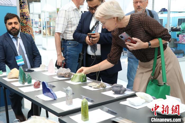 當(dāng)?shù)貢r間8月3日,哈薩克斯坦阿斯塔納,阿富汗商品展當(dāng)日啟幕。圖為阿富汗珠寶商展示產(chǎn)品?! ≈行戮W(wǎng)記者 張碩 攝