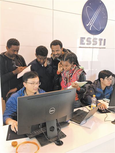 在中國援埃塞俄比亞微小衛(wèi)星地面站,中方專家正在對當(dāng)?shù)毓ぷ魅藛T進(jìn)行在站培訓(xùn)。