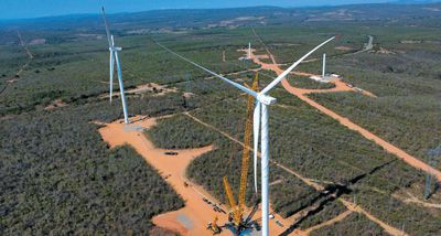 位于巴西巴伊亞州的風(fēng)電項目正在進(jìn)行機(jī)器吊裝。