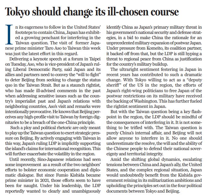 和評(píng)理 | 日應(yīng)停止干涉中國內(nèi)政 勿引火燒身重蹈覆轍