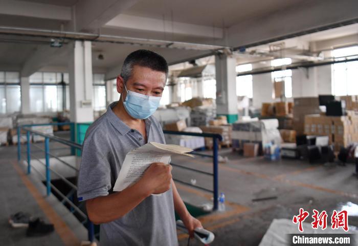 8月8日,楊遠(yuǎn)盛正在查看沒(méi)有被洪水浸泡的印刷品。 中新社記者 韓冰 攝