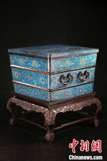 沈陽故宮院藏的清乾隆款掐絲琺瑯寶相花大冰箱,內(nèi)部為錫板里,內(nèi)加隔層木板,放入天然冰可使食品保鮮?!?沈陽故宮博物院供圖)