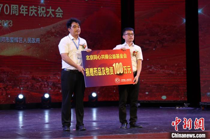 此次健康公益活動(dòng)由北京同心共鑄公益基金會(huì)主辦。活動(dòng)正逢愛輝區(qū)新生鄂倫春族鄉(xiāng)鄂倫春族同胞下山定居70周年,受愛輝區(qū)委區(qū)政府邀請(qǐng),北京同心共鑄公益基金會(huì)攜醫(yī)務(wù)志愿者、社會(huì)愛心人士參加了當(dāng)?shù)嘏e辦的相關(guān)慶?;顒?dòng)。其間,基金會(huì)向愛輝區(qū)捐贈(zèng)價(jià)值100萬元人民幣的藥品及物資,基金會(huì)秘書長(zhǎng)殷延志獲評(píng)為助力愛輝區(qū)鄂倫春族發(fā)展“貢獻(xiàn)杰出人物”。
