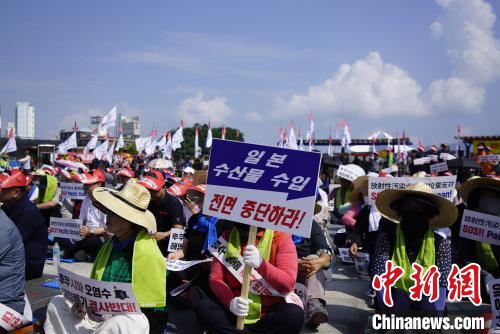 中新社韓國(guó)高興8月16日電 題:韓國(guó)漁民集會(huì)抗議:“大海不是投放日本核污染水的垃圾桶!”
