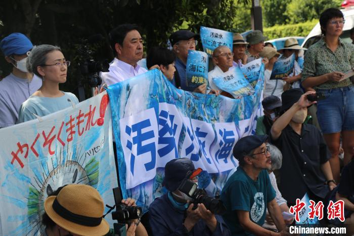 8月18日,日本民眾在東京首相官邸附近發(fā)起集會,要求政府遵守當初作出的不擅自處置核污染水的承諾,撤回核污染水排海計劃。中新社記者 朱晨曦 攝