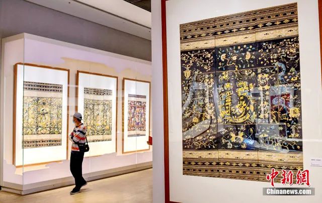 資料圖:海南省博物館展出的黎錦珍品——龍被。駱云飛 攝