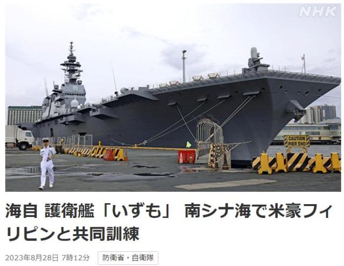 中新網(wǎng)8月28日電 綜合日媒報(bào)道,27日,日本海上自衛(wèi)隊(duì)公開了準(zhǔn)航母“出云”號??糠坡少e首都馬尼拉的畫面,并稱該艦在24日曾與美國、澳大利亞和菲律賓三國軍艦進(jìn)行了聯(lián)合演習(xí)。